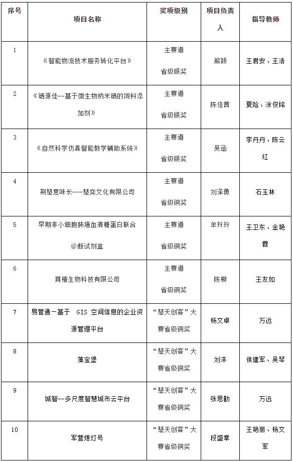 日前,第七届中国国际“互联网+”大学生创新创业大赛省赛结果揭晓,学院《军营熄灯号》项目(指导教师:王艳丽、杨文军,项目负责人:段盛章)获“建行杯”第四届“我梦见——楚天创客”大赛省级铜奖。