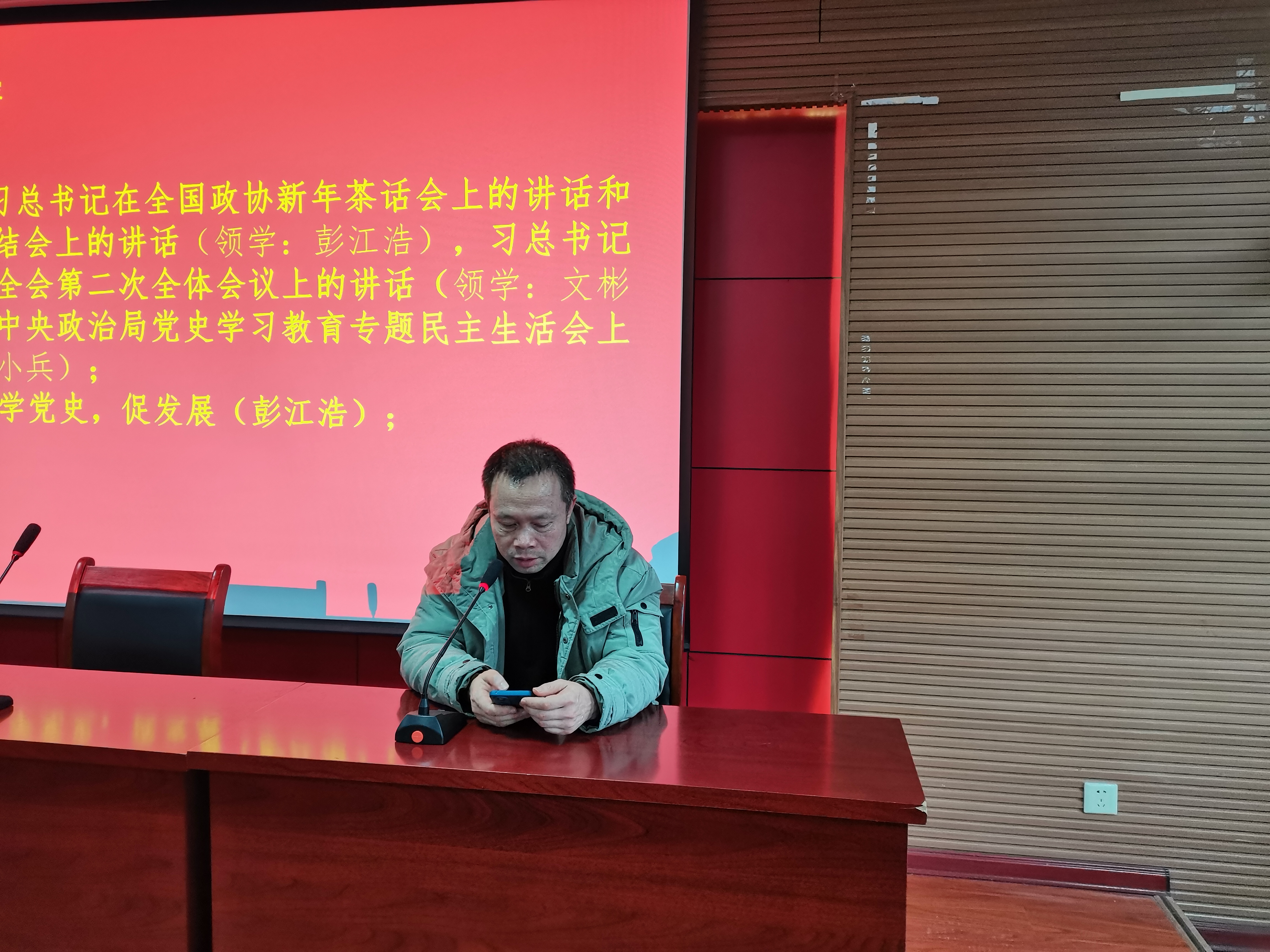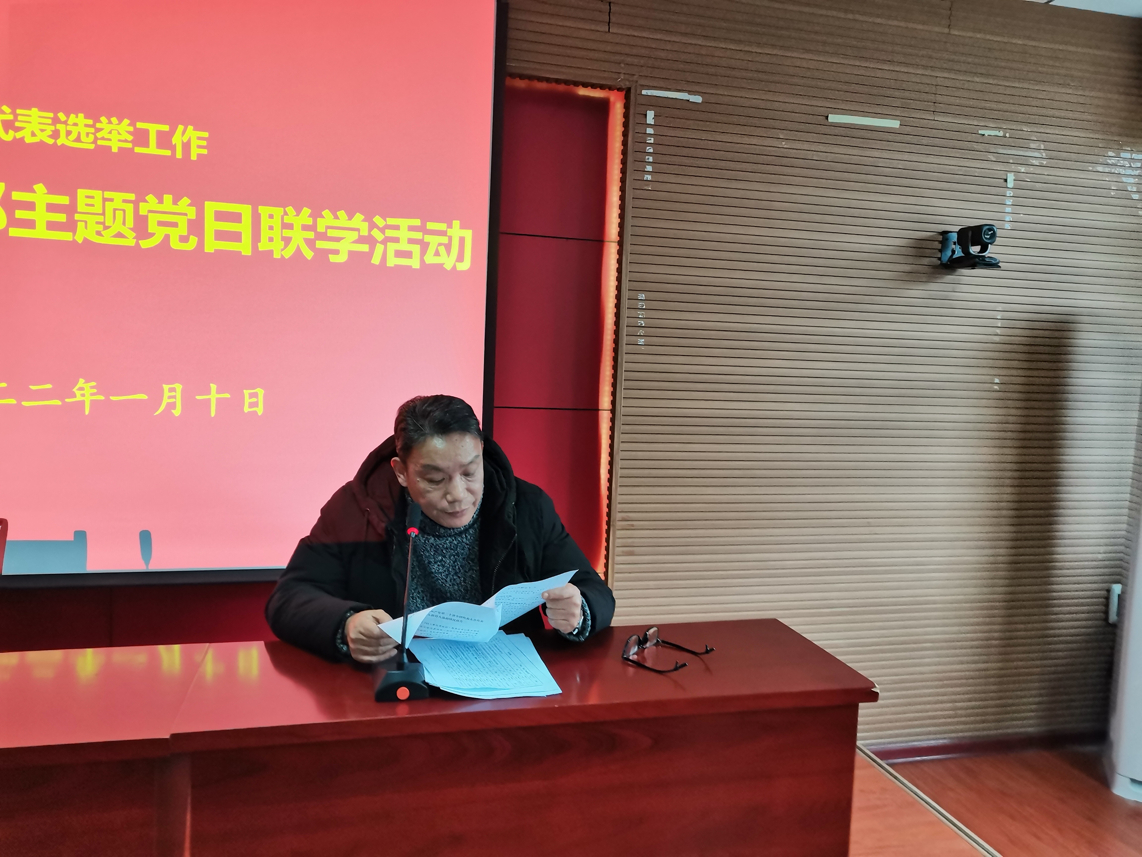 2022年1月10日下午,yl9193永利集团教师一支部与教师二支部在人文楼21A602学术报告厅联合开展一月份党日活动,主题为“学习六中全会精神,做好代表选举工作”,活动由一支部书记杨文军主持。