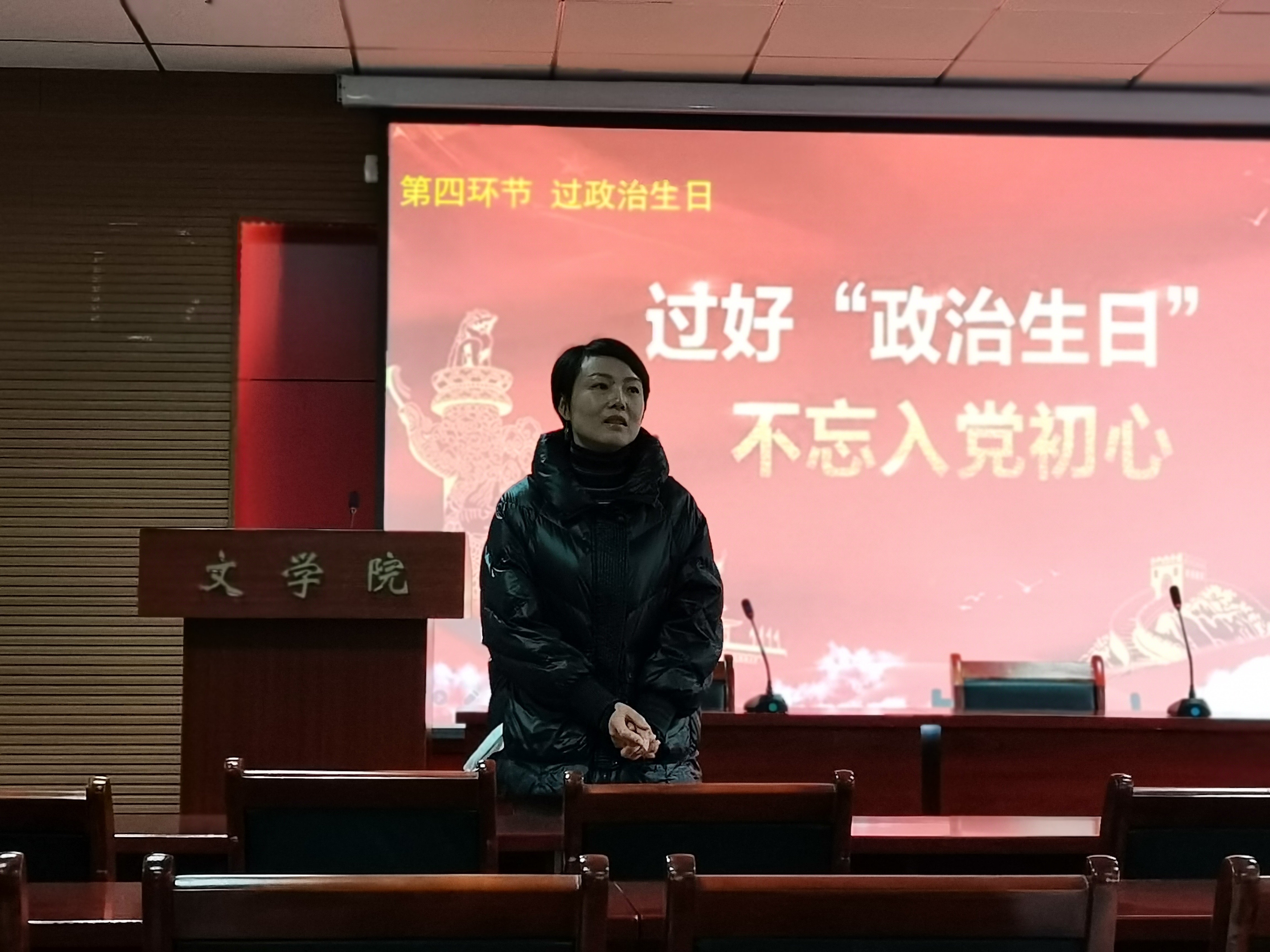 活动开始,党员老师们通过扫描二维码现场缴纳了党费;杨文军带领大家重温入党誓词,并一起诵读《党章》总纲的第四段;本月过政治生日的赵亿回顾了入党二十二年来的心路历程,她的真情讲述引发大家热烈的掌声。