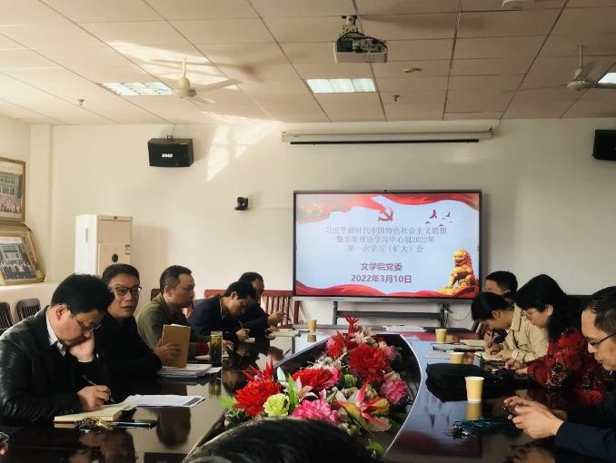 2022年3月10日上午,yl9193永利集团党委在人文楼21A505会议室召开习近平新时代中国特色社会主义思想暨党委理论学习中心组2022年第一次学习(扩大)会,专题学习习近平总书记系列重要讲话精神,并对学院党建、巡视整改、师范专业认证、疫情防控、年度考核等重点工作进行部署。会议由院党委书记严志谷主持,全体党委委员参加会议,副院长李有光、王成及教工支部委员、学生支部书记等出席会议。