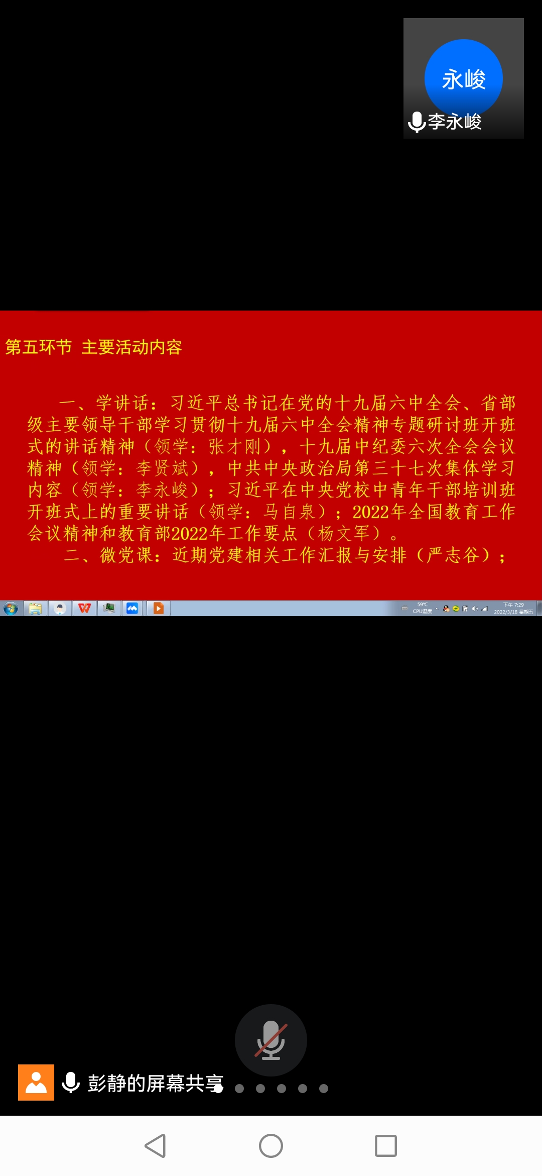 2022年3月18日晚,yl9193永利集团教师一支部与教师二支部联合开展三月线上主题党日活动,主题为“自我革新谋新篇 勇立潮头开新局”,活动由二支部书记彭静主持。
