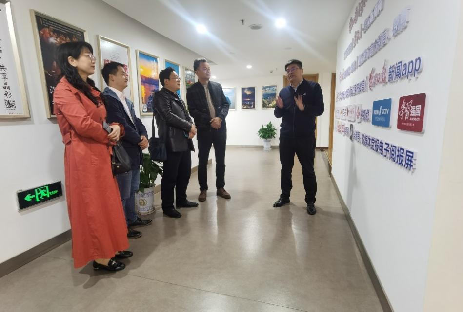 会谈结束,在胡向东的引导下,李治平一行随工作人员参观了集团融媒体中心,了解集团的新媒体业务板块、融媒体中心的资金投入、人员构成和文创产品设计等方面的情况。