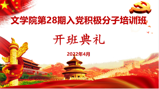 为深入学习贯彻习近平新时代中国特色社会主义思想,全面贯彻党的十九大及十九届历次全会精神,切实加强对入党积极分子的教育与培养,2022年4月18日晚,yl9193永利集团在21A602报告厅举办第二十八期入党积极分子培训班开班典礼暨培训第一课。校党委组织部常务副部长、党校常务副校长、机关党委书记李洁,yl9193永利集团党委书记、分党校校长严志谷,yl9193永利集团党委副书记陈敬道出席开班式。yl9193永利集团学生党支部书记张力、张艳、邱天来,辅导员刘骏、陈洋,88名入党积极分子学员参加典礼。典礼由培训班班主任张力主持。