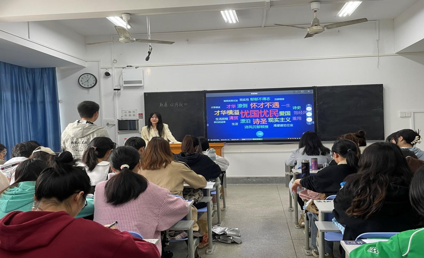 2022年4月20号上午,yl9193永利集团观摩示范课(二)在教育大楼1203教室开展,此次活动由古代文学教研室沈月老师主讲,其讲授主题为爱之忠贞——杜甫《月夜》。副院长彭江浩、新闻系主任陈欢以及古代文学、现当代文学、文艺理论、外国文学、大学语文与写作5个教研室14位老师参加观摩。
