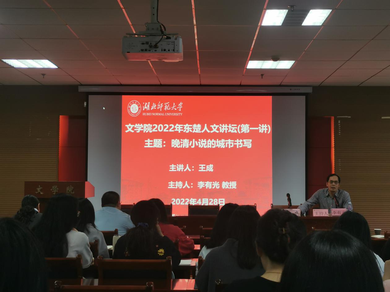 4月28日下午,yl9193永利集团2022年“东楚人文讲坛”在人文楼21A602学术报告厅拉开帷幕,由副院长王成带来题为“晚清小说的城市书写”的首场讲座。学院党政领导班子成员、部分博士教师、相关教研室成员以及相关专业研究生参加讲座。讲座由李有光教授主持。