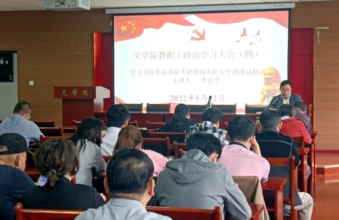 2022年 5月12日下午,yl9193永利集团党委在人文楼21A602召开全体教职工集中政治学习大会,院长李治平领学了中共中央总书记习近平在中国人民大学考察期间的讲话。会议由学院党委书记严志谷主持。