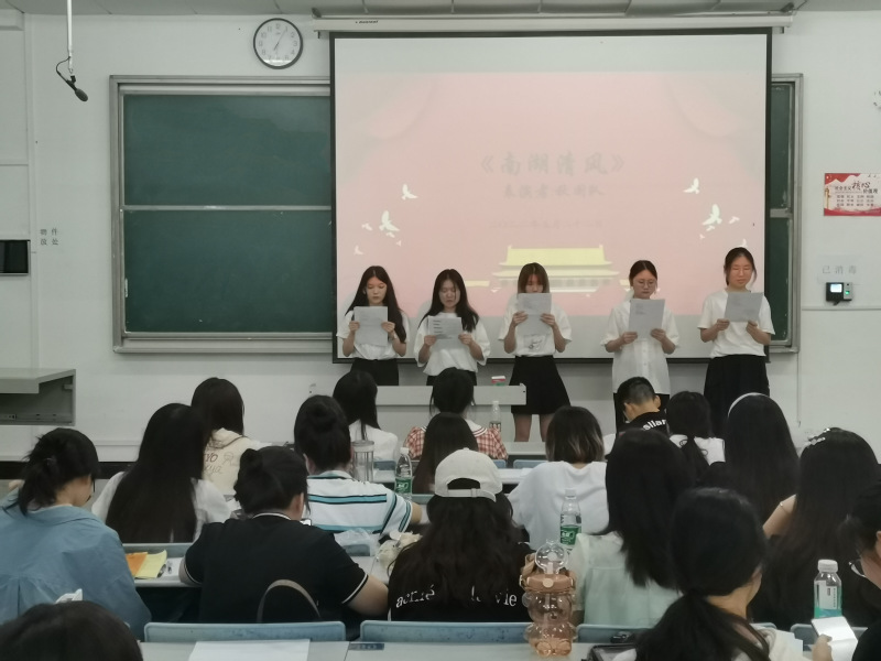 主题朗诵环节,则是班内同学主动报名,表现班级原生风貌的舞台。两袖清风队和秋阑队带来精彩表演《廉洁》、《南湖清风》,经典的诗篇在新时期中国青年的朗诵里焕发了新的活力。大家坐在一起感悟源远流长的“清廉”思想,各有所悟。