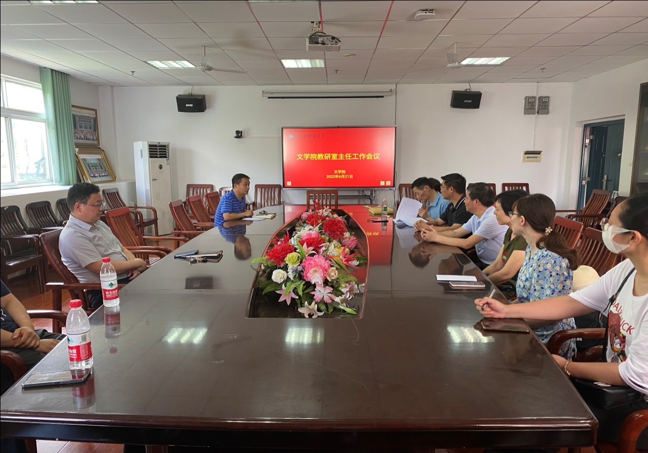 王成首先通报了本学期学院在专业建设、省一流课程申报、课程思政课程项目、教学研究项目,以及省级基层教学申报等事项的进展与阶段性成果。他指出,本学期学院在一流课程建设和课程思政项目建设取得不错的成绩,其他方面的工作也在各教研室主任的推动下有序开展,教学各项事业发展态势良好。随后,他梳理了近期日常教学管理的注意事项和细节问题,要求各教研室主任加强教学工作的精细化管理。他特别强调,各教研室主任在教材审核过程中要注意意识形态领域问题的审查。最后,他总结到,学院的教学工作头绪万千,需要各教研室主任来承担并配合学院做好相关工作,也希望各教研室主任积极主动做好各教研室内部资源的整合,扶持年轻博士的成长以及做好教研室的长远规划,有序推进各项工作。