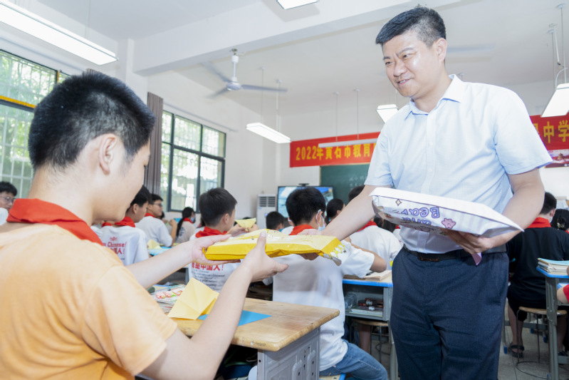 2022年7月13日上午,学校党委副书记马列军,学校相关部门、院系负责人到阳新县军垦中学看望、慰问yl9193永利集团文化速递实践队队员和支教班学生,团阳新县委和军垦中学相关负责人参加看望。