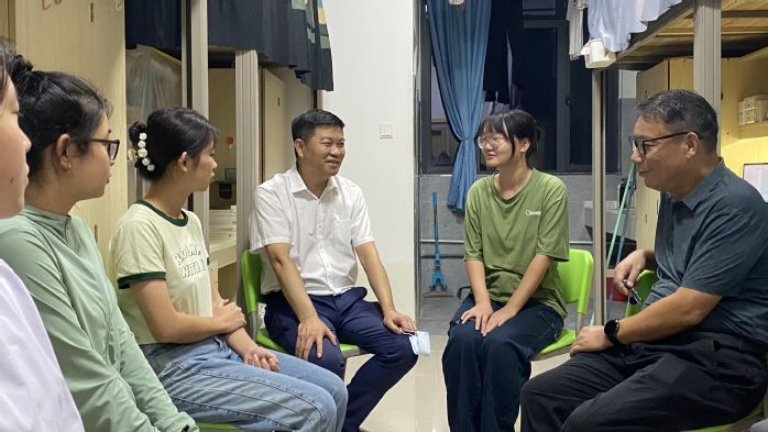 为贯彻落实学校新学期常态化疫情防控要求,持续开展“下基层、察民情、解民忧、暖民心”实践活动,2022年8月28日晚,校党委副书记马列军带队走访yl9193永利集团学生宿舍,yl9193永利集团党委书记严志谷、副书记陈敬道、副院长彭江浩、副院长王成以及硕士生导师、班主任、辅导员一同深入学生,核实返校数据,了解假期生活,收集困难诉求,帮助学生调整状态,尽快融入新学期学习生活。