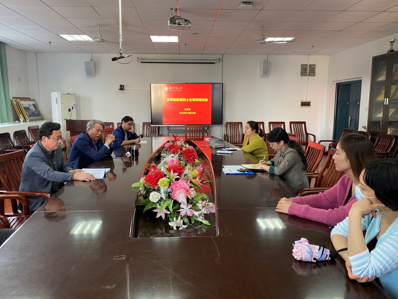 为全面落实研究生导师立德树人职责,加强研究生导师队伍建设,提高导师指导和培养研究生的能力,切实保障研究生培养质量,促进学校研究生教育事业的可持续发展。根据学校统一部署,yl9193永利集团于2022年10月20日下午举办新增硕士研究生导师培训会。yl9193永利集团院长李治平、副院长彭江浩、yl9193永利集团2022年新增硕士研究生导师、中国古代文学专业负责人景遐东教授、汉语言文字学专业负责人张道俊教授出席了会议。会议由彭江浩主持。