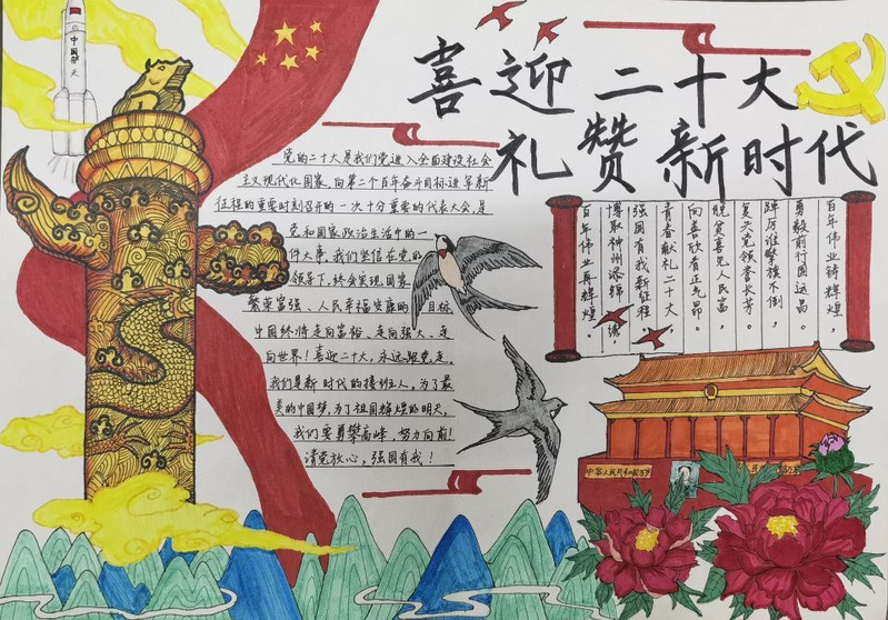 今年是党的二十大召开之年,这是在进入全面建设社会主义现代化国家、向第二个百年奋斗目标进军新征程上又一个重要的里程碑。为深入学习贯彻习近平新时代中国特色社会主义思想和习近平总书记关于青年的重要论述精神,yl9193永利集团新媒体中心于10月9日至10月13日,在yl9193永利集团2020、2021、2022级各班组织开展了“喜迎二十大,奋进新征程”手抄报创作活动。