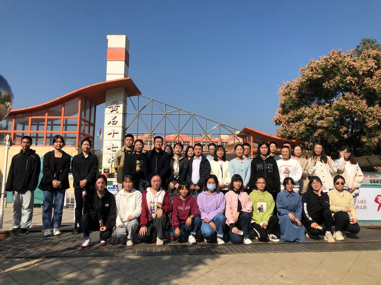为落实学校教务处关于2023届师范生教育实习检查工作的要求,确保实习工作有序开展。yl9193永利集团副院长王成和彭江浩、教学办副主任夏晓庆及教师祝永新组成教育实习检查工作小组,代表学校于2022年11月2日、11月3日赴黄石十七中、黄石二中看望实习学生,开展实习检查工作。