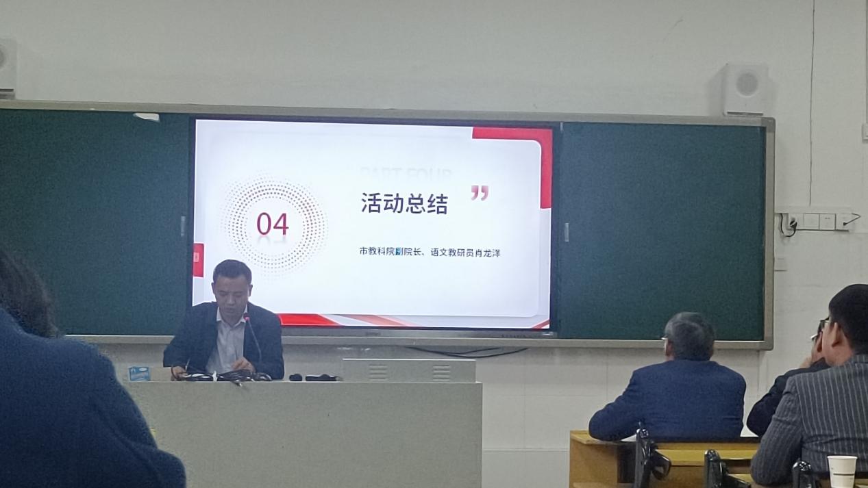 活动最后,市教科院副院长肖龙洋教研员从准确解读文本、勤于对考点考题的研究、精于对方法和技巧的提炼等三个方面,分析和总结了此次教研活动。
