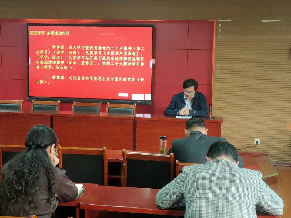 最后,微党课环节将本次主题党日活动推向了高潮。学院党委委员张才刚结合自身多年的党史研究和丰富的现实案例做了一堂生动的微党课——《文化自信与马克思主义中国化时代化》。张才刚认为,学习、理解和实践习近平新时代中国特色社会主义思想,首要任务就是深刻认识“文化自信”在马克思主义中国化时代化进程中的价值,因为“文化自信并不是一个抽象命题——它关系到中国社会的发展动力与方向,关系到马克思主义在中华大地上的继承与发展问题,也关系到民族的生存空间与未来道路”。