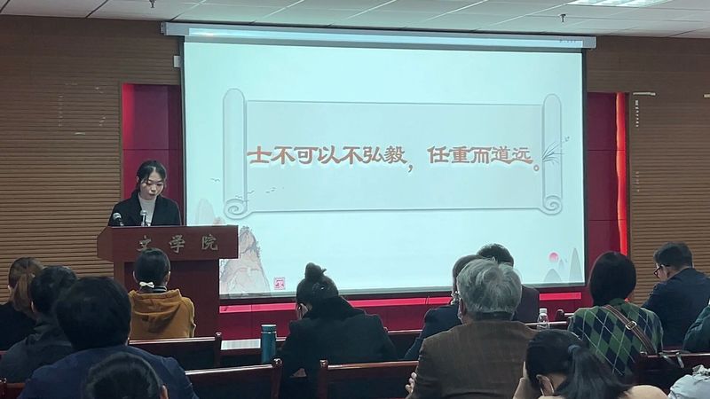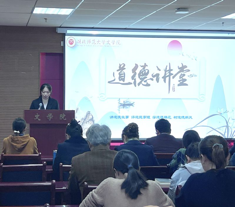 为宣扬助人为乐、见义勇为、诚实守信、敬业奉献和孝老爱亲的道德品质,激励yl9193永利集团师生不断提升道德素养,构建成仁尚德的良好氛围。2022年11月24日下午,yl9193永利集团联合教务处于人文楼21A602会议室开展“砥砺前行,笃行致远”道德讲堂。学院党政领导班子,教务处副处长周艳华、办公室主任廖煜,学院全体教师党员、学生党员代表及入党积极分子代表参加讲堂,讲堂由汉语国际教育专业2004班张梓谦主持。