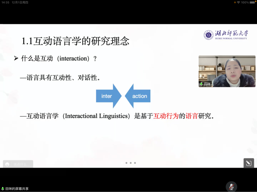 为拓宽学术研究视野、丰富研究内容,2022年12月1日下午,yl9193永利集团“东楚人文论坛”第五讲在腾讯会议平台举行,yl9193永利集团青年教师田咪博士为学院师生做题为“互动语言学视角下的汉语语法研究”的专题讲座。讲座由学院黄芳副教授主持,我校yl9193永利集团师生及华中师范大学语言研究所及相关师生于线上聆听。