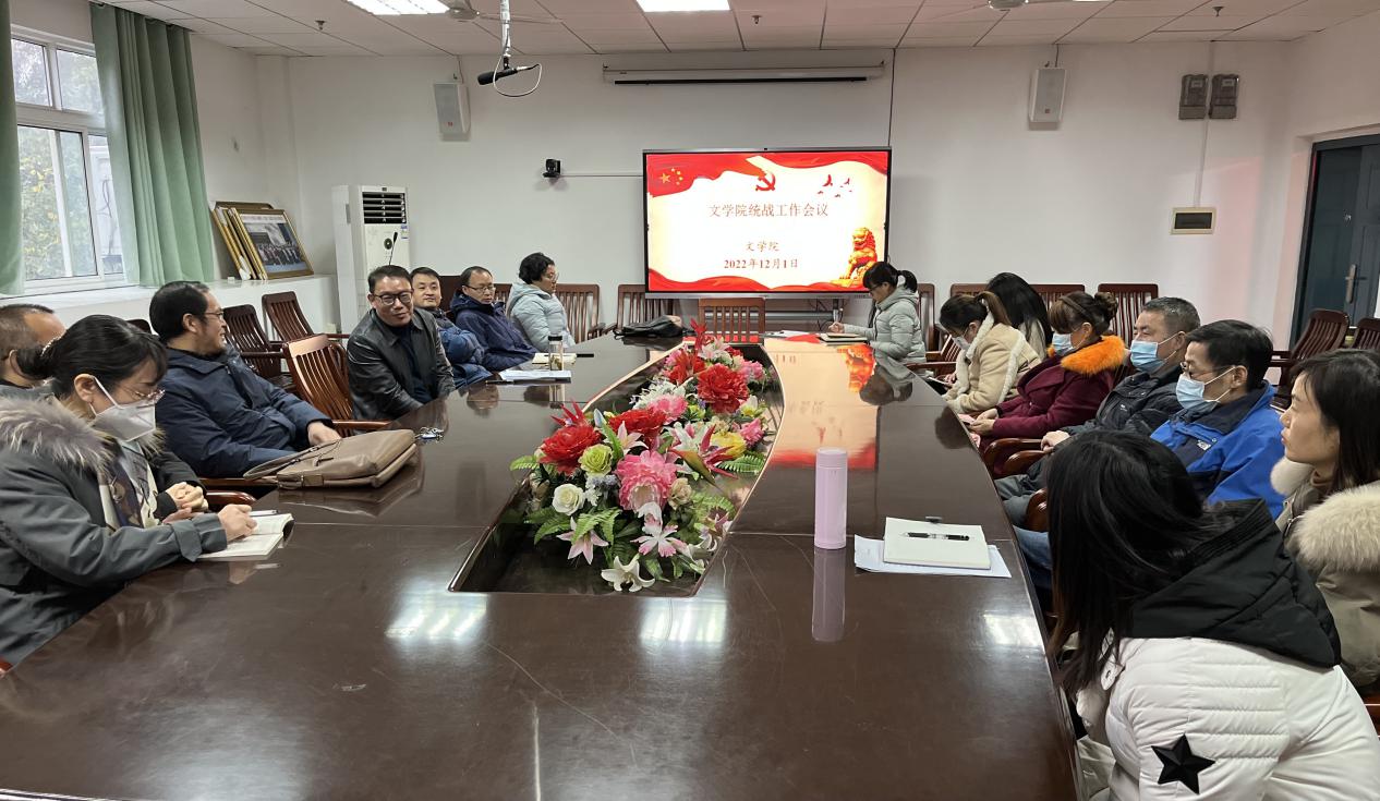 2022年12月1日下午4:30,yl9193永利集团党委于人文楼A-505会议室召开统战工作专题会议。会议由学院党委书记严志谷主持,全体党委委员、学院教职工中的民主党派及无党派人士参加会议。