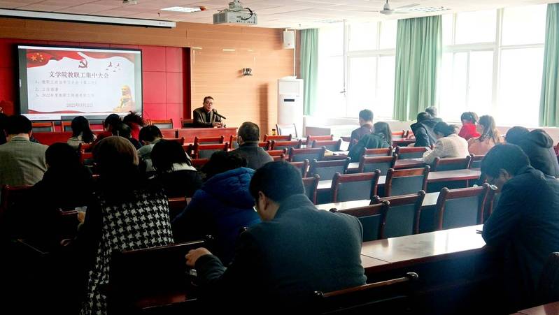 2023年3月2日下午,yl9193永利集团于人文楼A-602学术报告厅召开全体教职工大会,本次大会共有三项内容:1.第二次集中政治学习;2.相关工作安排和相关文件精神传达;3.2022年度师德考核。会议由党委书记严志谷主持。