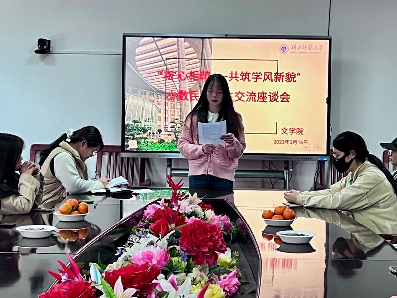 为进一步了解新学期少数民族学生学习、生活情况,加强学风建设,yl9193永利集团于2023年3月16日下午在人文楼21A505召开了“‘新’心相印——共筑学风新貌”少数民族学生交流会。学生会干事王誉烨、沈岩主持会议,辅导员董雅芳和yl9193永利集团各年级少数民族学生代表参加会议。