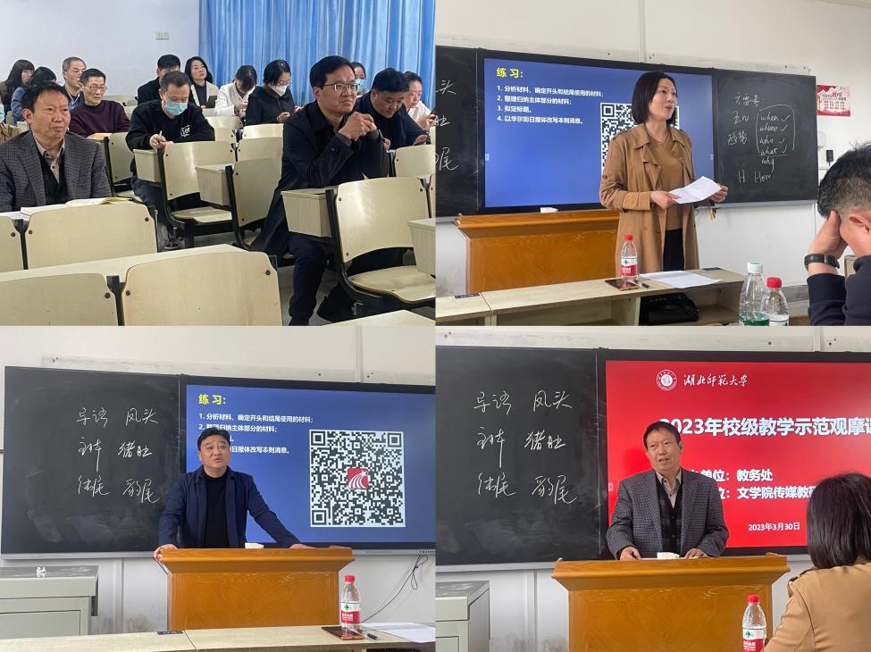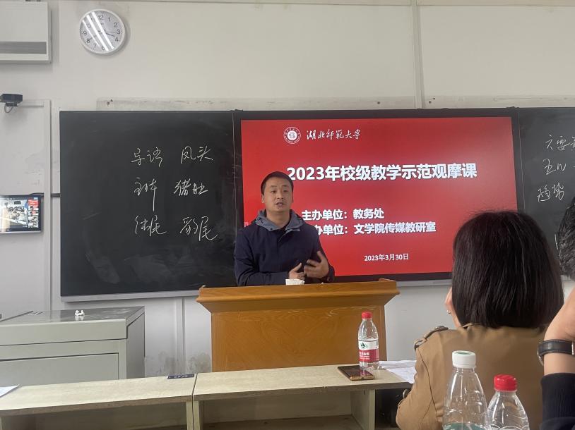 为进一步深化课堂教学改革,提升教师教学业务水平,充分发挥优秀教师的示范带头作用,促进教师间教学经验学习交流,我校2023年教师示范观摩课活动于3月30日下午如期举行。教务处处长胡艳军、yl9193永利集团副院长王成、校级教学督导吴瑞霞、文科专业新进教师和yl9193永利集团部分师生共同参与了此次活动。我院传媒教研室陈欢老师成功入围此次校级示范观摩课活动,并做了精彩示范。传媒教研室主任赵亿主持了此次活动。