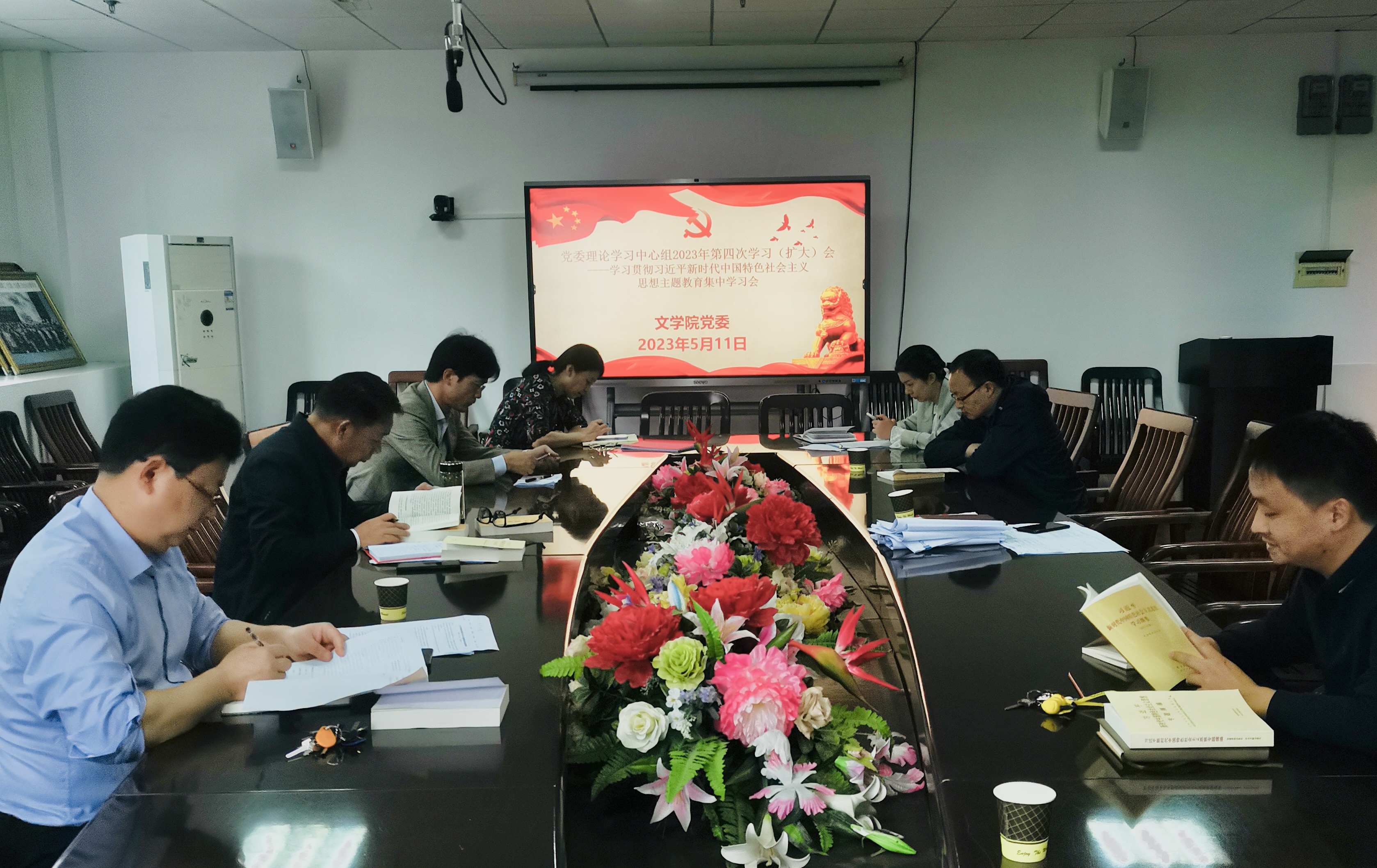 2023年5月11日上午,yl9193永利集团党委于人文楼A-505会议室召开本年度第四次理论学习中心组学习(扩大)会暨学习贯彻习近平新时代中国特色社会主义思想主题教育读书班第三次集中学习会。会议由党委书记严志谷主持,党委委员、读书班全体成员参加学习。