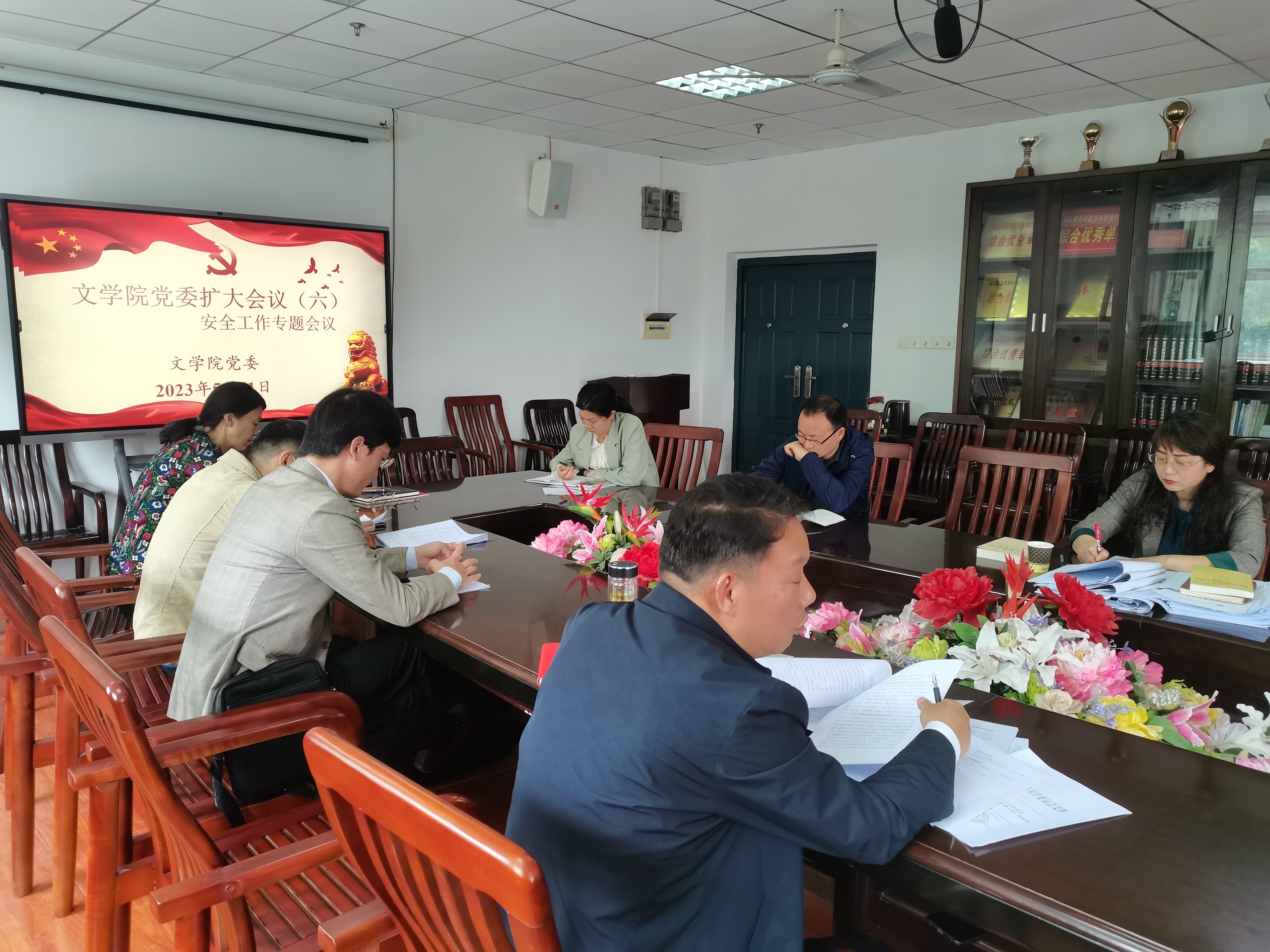 会上,党委书记严志谷首先领学了《习近平著作选读》(二)中的“坚持总体国家安全观”一文:“要突出抓好政治安全、经济安全、国土安全、社会安全、网络安全等各方面安全工作。”其后,会议又集中学习了湖师党办【2023】9号“印发《永利集团2023年平安校园创建工作方案》的通知”内容,强调要坚持以习近平新时代中国特色社会主义思想为指导,贯彻落实习近平总书记关于平安建设重要讲话和指示批示精神,牢固树立校园安全红线意识和底线思维,配合学校严格按照“党政同责、一岗双责、齐抓共管、失职追责”的要求,推进学院平安校园“七防工程”建设向纵深开展;与会人员也就各自分管、从事的岗位、业务情况谈了安全现状并提出了工作建议,尤其是学工方面,重点突出了学生人身、财产、就业、防疫等关键点。最后,严志谷作了总结发言:安全无小事,学院要在学习、领会精神的前提下对标对表对要求地做好以下工作:1.确保师生意识形态尤其是网络意识形态工作等政治安全万无一失;2.关注、关心师生人身安全尤其是学生全方位的安全,对关键人事、平台、节点等不能掉以轻心、麻痹大意;3.凡出现突发事故或事件,应严格按相应预案及时处置,最大可能地减少伤害、损失和负面影响。