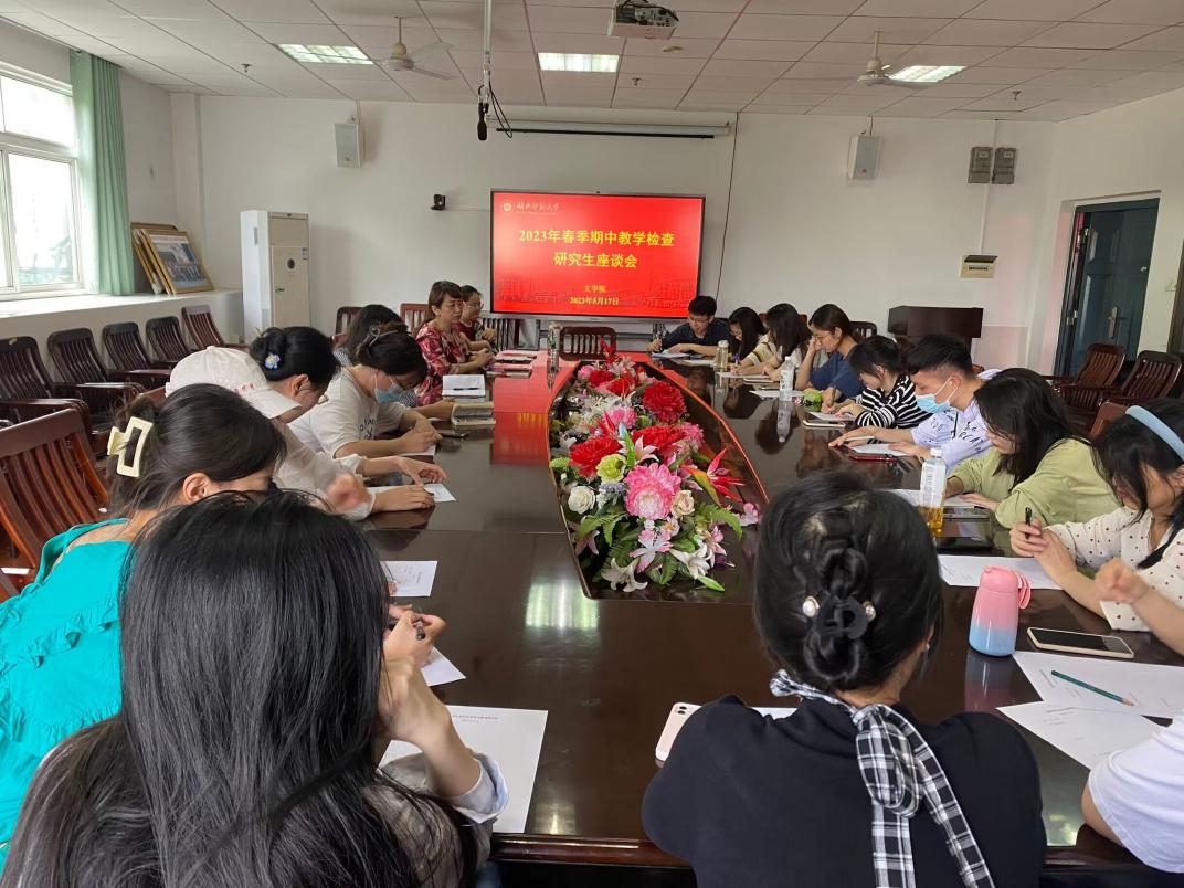 为落实学校有关工作要求,检查学生本学期学习情况,并就提升研究生培养质量的相关问题进行调研,切实做好研究生教育、管理、服务等各项工作,2023年5月17日下午3点,yl9193永利集团在人文楼21A505会议室召开2023年春季学期期中硕士研究生座谈会。会议由yl9193永利集团副院长彭江浩主持,教学秘书曾颖以及研究生代表参会。