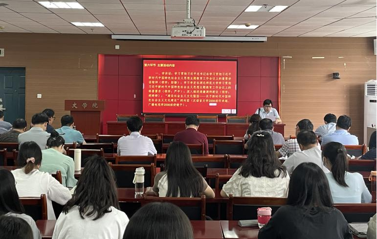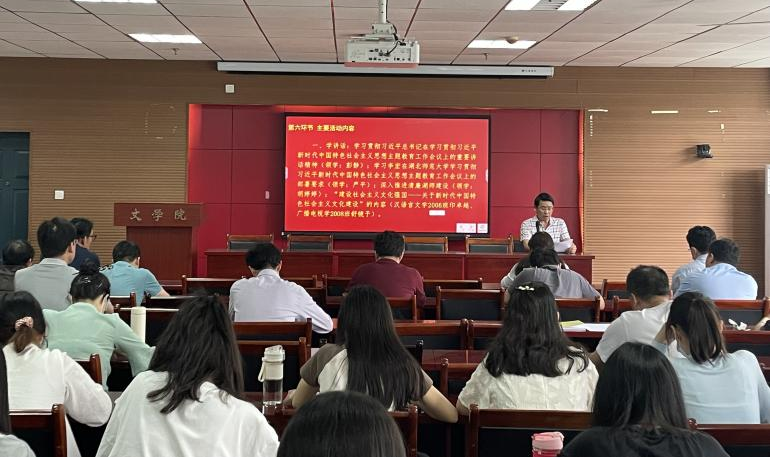 在“学讲话”环节中,彭静领学“学习贯彻习近平总书记在‘学习贯彻习近平新时代中国特色社会主义思想主题教育工作会议’上的重要讲话精神”;严平领学“李宏在永利集团‘学习贯彻习近平新时代中国特色社会主义思想主题教育工作会议’上的部署要求”;汉语言文学2006班印卓越、广播电视学2008班舒镜予领学“建设社会主义文化强国——关于新时代中国特色社会主义文化建设”的政治学习内容。