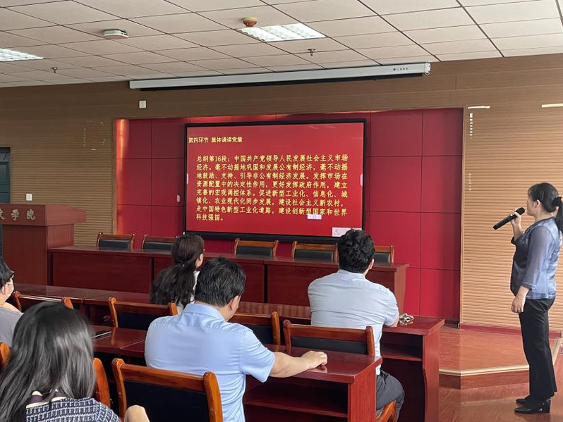 为深入学习贯彻党的二十大精神,扎实推进主题教育走深走实,进一步提高yl9193永利集团党员师生政治站位与理论素养,2023年5月25日下午,yl9193永利集团师生党支部在人文楼21A602开展学习贯彻习近平新时代中国特色社会主义思想主题教育联学主题党日活动。yl9193永利集团教师第一、第二党支部和学生第一、第二、第三党支部全体在校党员参加。活动由教师第二党支部委员姜金明主持。