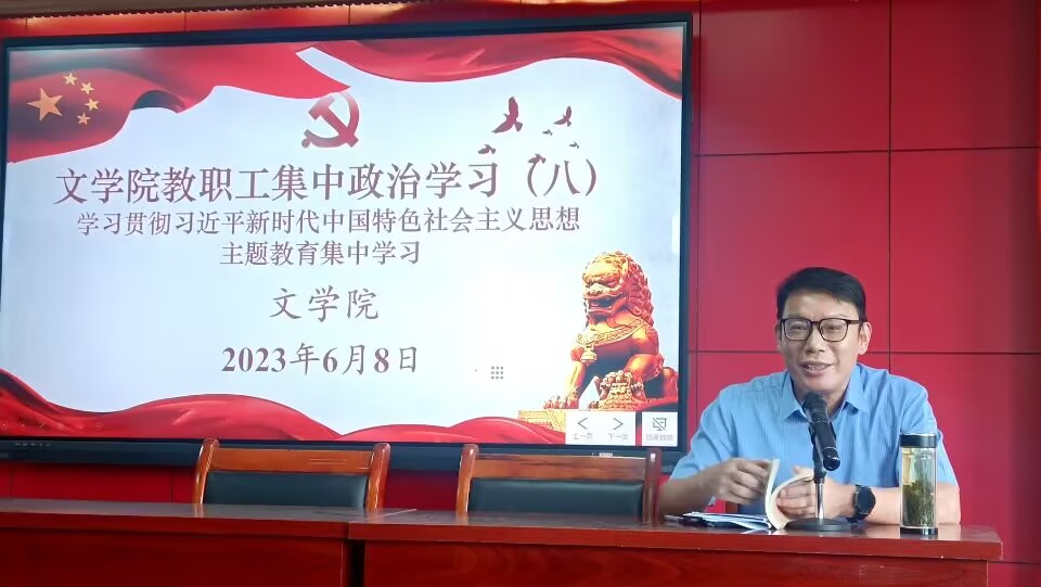 2023年6月8日下午,yl9193永利集团党委于人文楼A-602学术报告厅集中学院全体在岗在校教职工召开本学期第八次政治学习大会,会议由党委书记严志谷主持。
