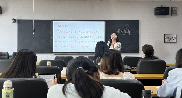 实习生们分别讲解了《祝福》、《虽有嘉肴》、《紫藤萝瀑布》、《说木叶》、《桂枝香金陵怀古》、《登岳阳楼》、《登幽州台歌》、《苏幕遮》、《林教头风雪山神庙》、《拟行路难》等篇目,他们精心准备、创新方法,迎来了台下同学的阵阵掌声。
