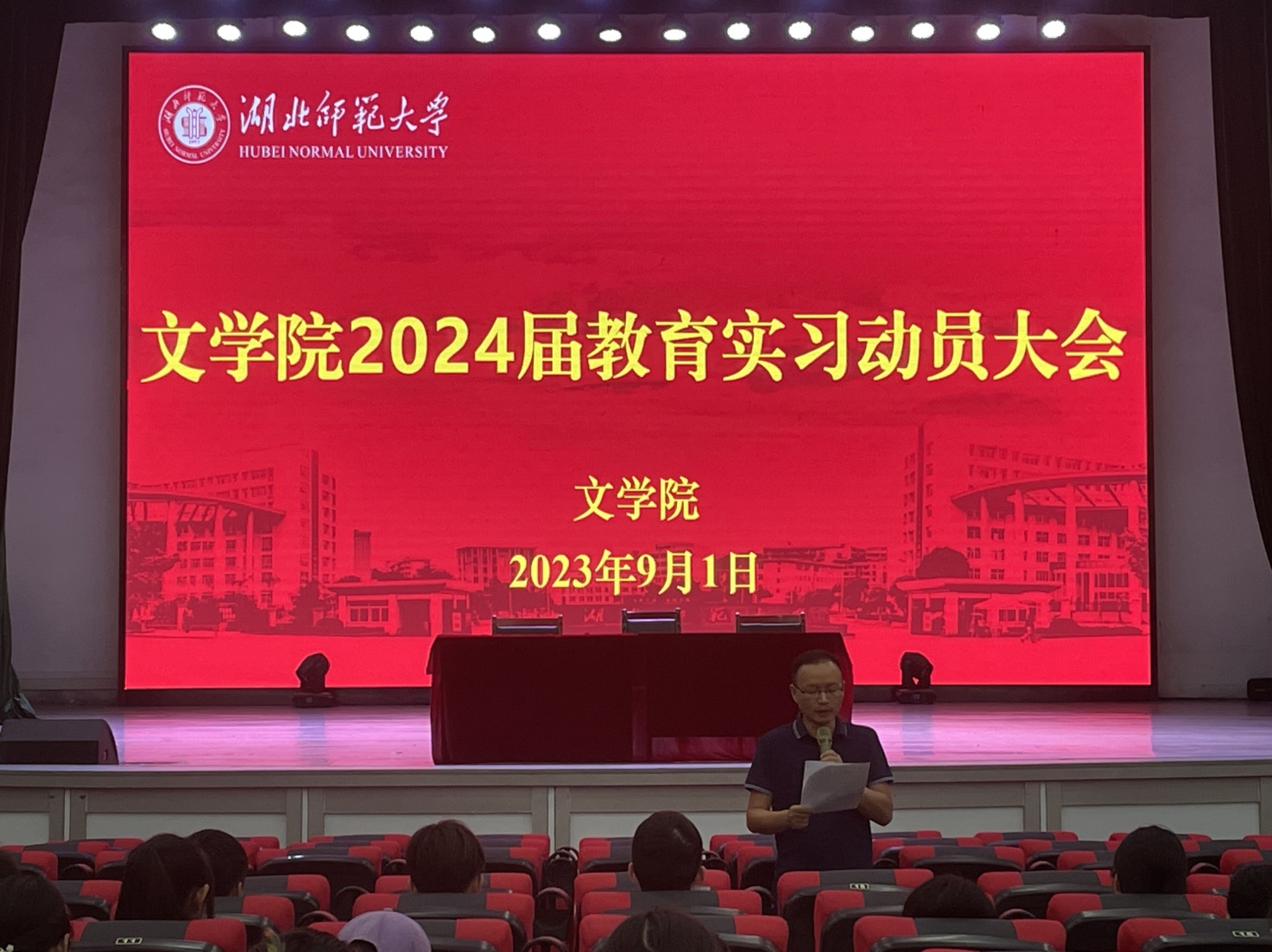 为保证教育实习质量、落实立德树人根本任务,yl9193永利集团于2023年8月31日下午在21A505召开了由班子成员、毕业班班主任、实习带队老师等参加的实习工作通报会;又于9月1日下午在湖师大礼堂召开了2024届教育实习动员大会,副院长杨文军、教学秘书夏晓庆以及20级全体师范生与会。