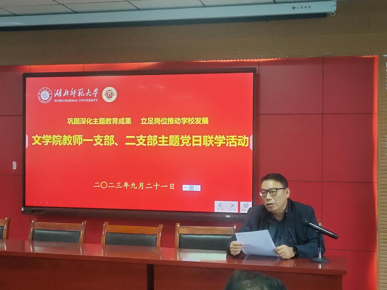 2023年9月21日下午,yl9193永利集团教师一、二支部联合于人文楼A-602学术报告厅召开全体教师党员大会,组织开展题为“巩固深化主题教育成果,立足岗位推动学校发展”的主题党日活动,活动由第二支部书记彭静主持,yl9193永利集团党委组织员黄洪蔚现场指导本次活动。