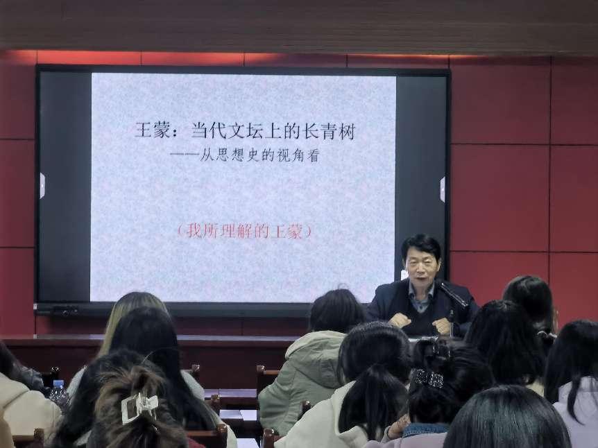 为庆祝永利集团建校50周年,2023年11月15日晚,yl9193永利集团特邀海南师范大学毕光明教授回母校作了一场题为《王蒙——当代文坛上的长青树》的学术报告。
