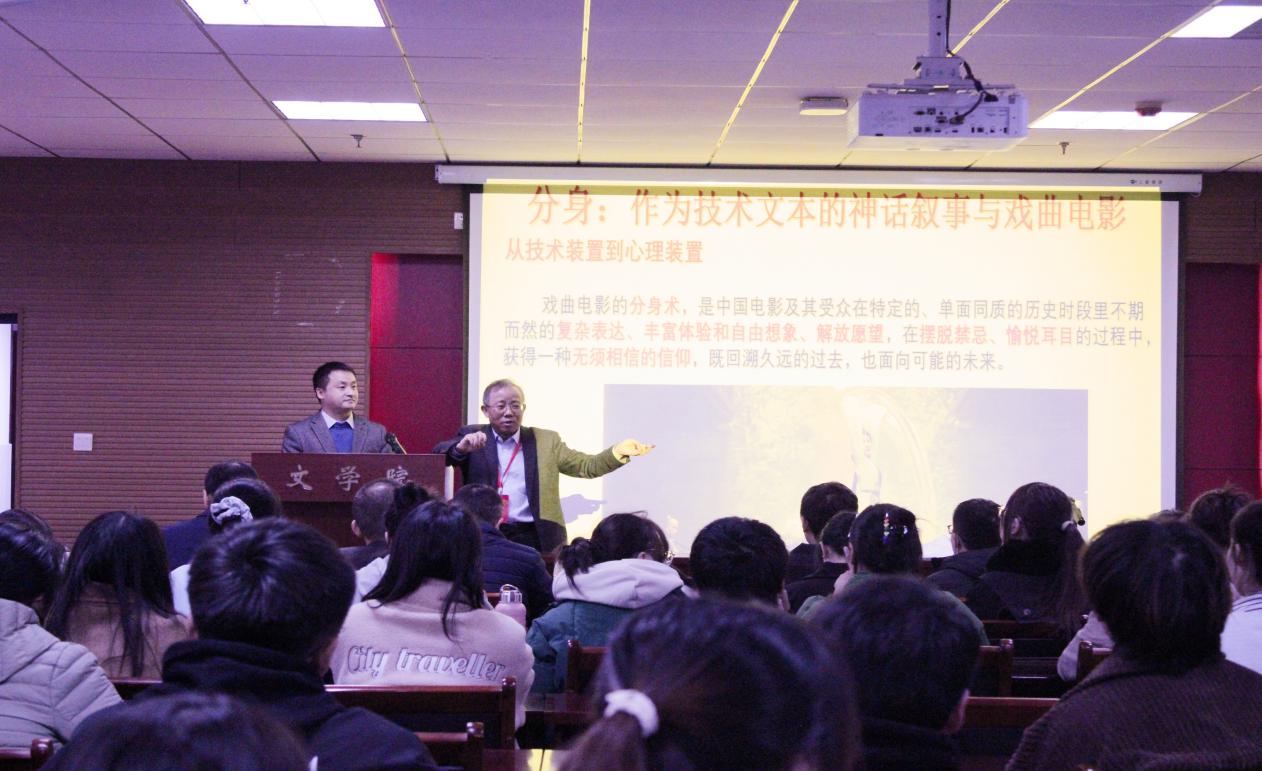 为庆祝永利集团建校五十周年,yl9193永利集团推出校庆学术系列报告。2023年11月17日下午,yl9193永利集团校友、北京大学李道新教授作客我校50周年校庆系列学术报告会,为yl9193永利集团师生作题为“分身:作为技术文本的神话叙事与戏曲电影”的专题学术报告。此次学术讲座在人文楼A座602报告厅展开,yl9193永利集团特邀嘉宾、yl9193永利集团班子成员、教师、研究生以及部分本科生参加本次讲座。讲座由副院长王成博士主持。