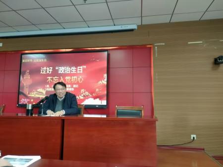 活动伊始,党员们交纳党费、诵读党章。“过政治生日”环节,景遐东同志回忆自己在扬州学院的求学经历,思索古代文学的发展问题,表达出不忘初心、追求真理、实事求是、守正出新的意志和决心。