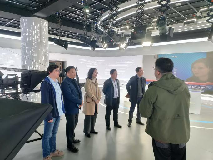 在武汉东湖学院法学与新闻传播学院,院长胡蕾、院长助理王黎黎等首先带领李治平一行参观了新建成的融媒体中心,详细介绍了中心筹划、建设、运行的基本情况。随后,双方在会议室举行座谈,就传媒专业优化调整、人才培养模式、毕业生就业及实验室建设等问题进行了沟通。