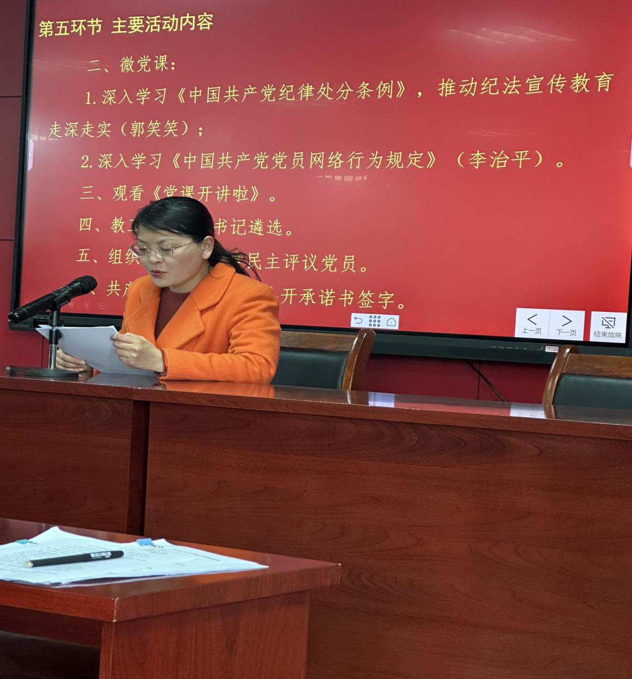 本期微党课由学院党委副书记郭笑笑同志主讲,主题为“深入学习《中国共产党纪律处分条例》,推动纪法宣传教育走实走深”。郭书记认为,《条例》进一步严明了党的政治纪律和政治规矩,将带动各项纪律全面从严,不断增强党员同志自我净化、自我完善、自我革新、自我提高的能力。她号召我院党员教师必须把学习贯彻新修订的《条例》作为重要政治任务,自觉将纪律要求内化于心、外化于行。