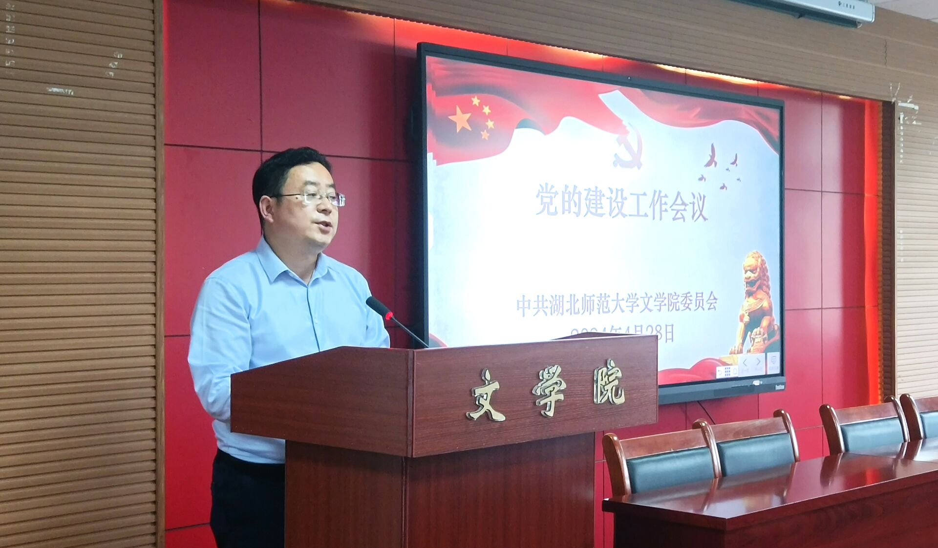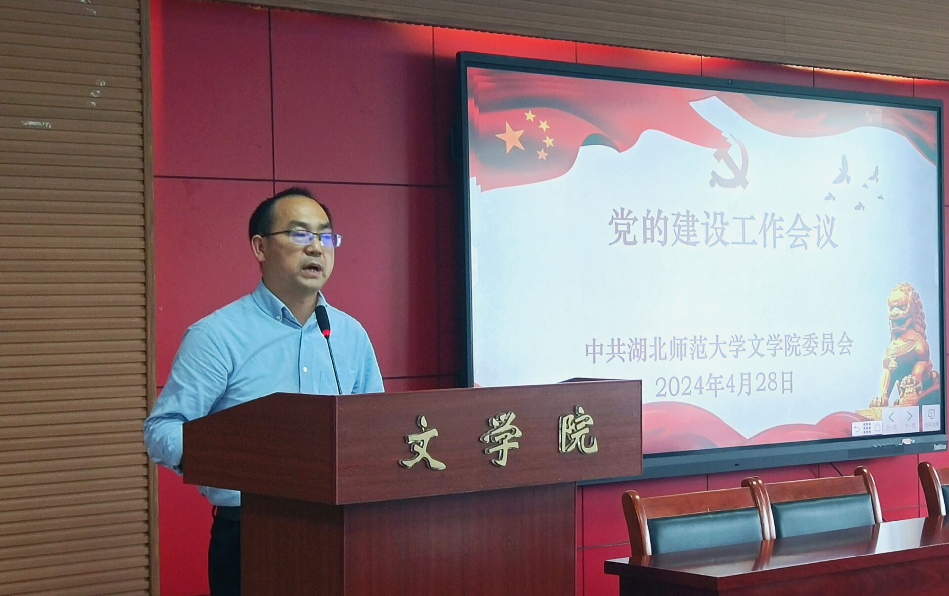 2024年4月28日下午,yl9193永利集团在人文楼21A602报告厅召开党的建设工作会议,启动部署学院党纪学习教育。学院领导班子成员、全体教师党员参加会议,会议由院党委书记车录彬主持。