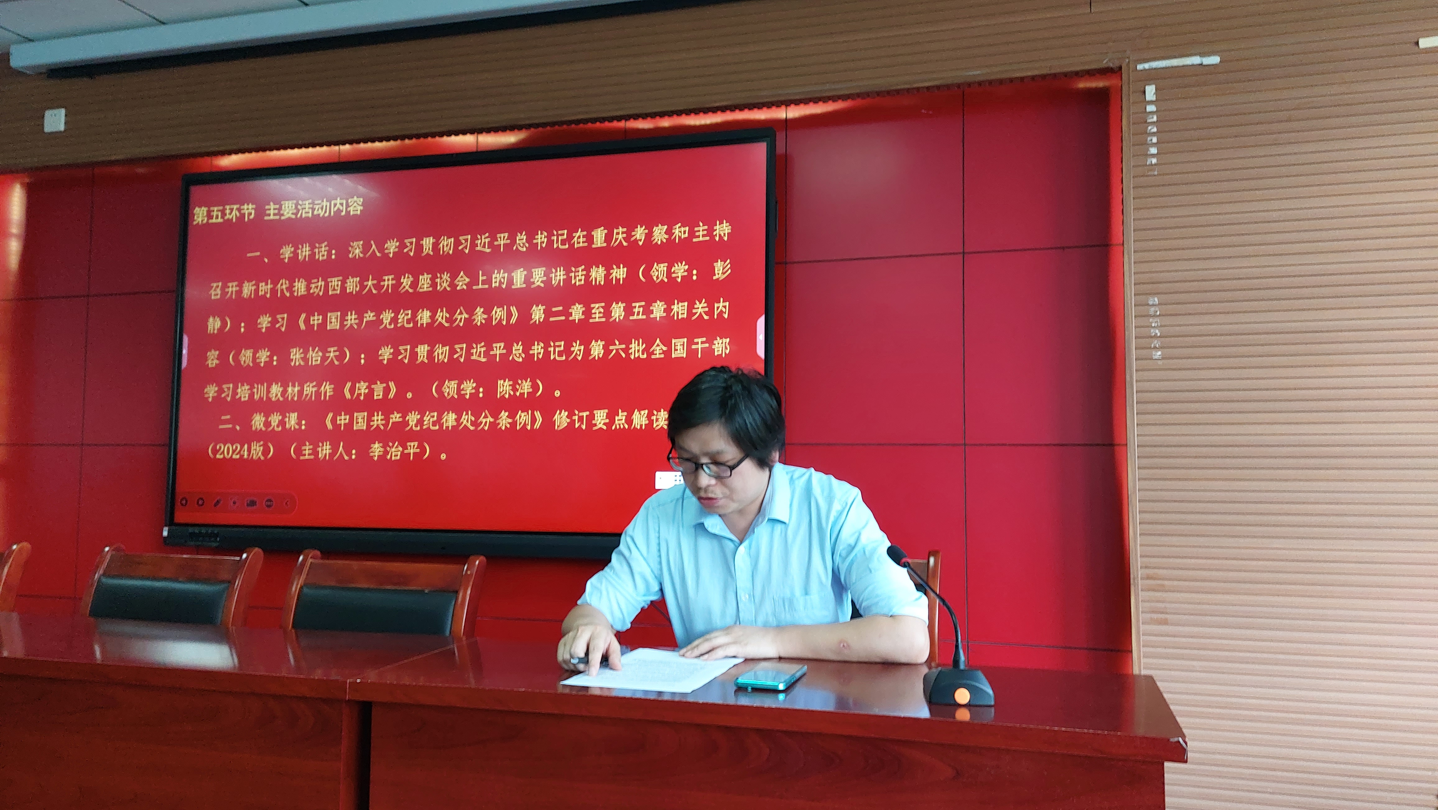 随后,活动进入学讲话环节,彭静、张怡天、陈洋三位同志分别领学了《习近平总书记在重庆考察和主持召开新时代推动西部大开发座谈会上的重要讲话精神》、《中国共产党纪律处分条例》第二章至第五章相关内容、习近平总书记为第六批全国干部培训教材所作的《序言》,并畅谈了各自的学习心得和体会。