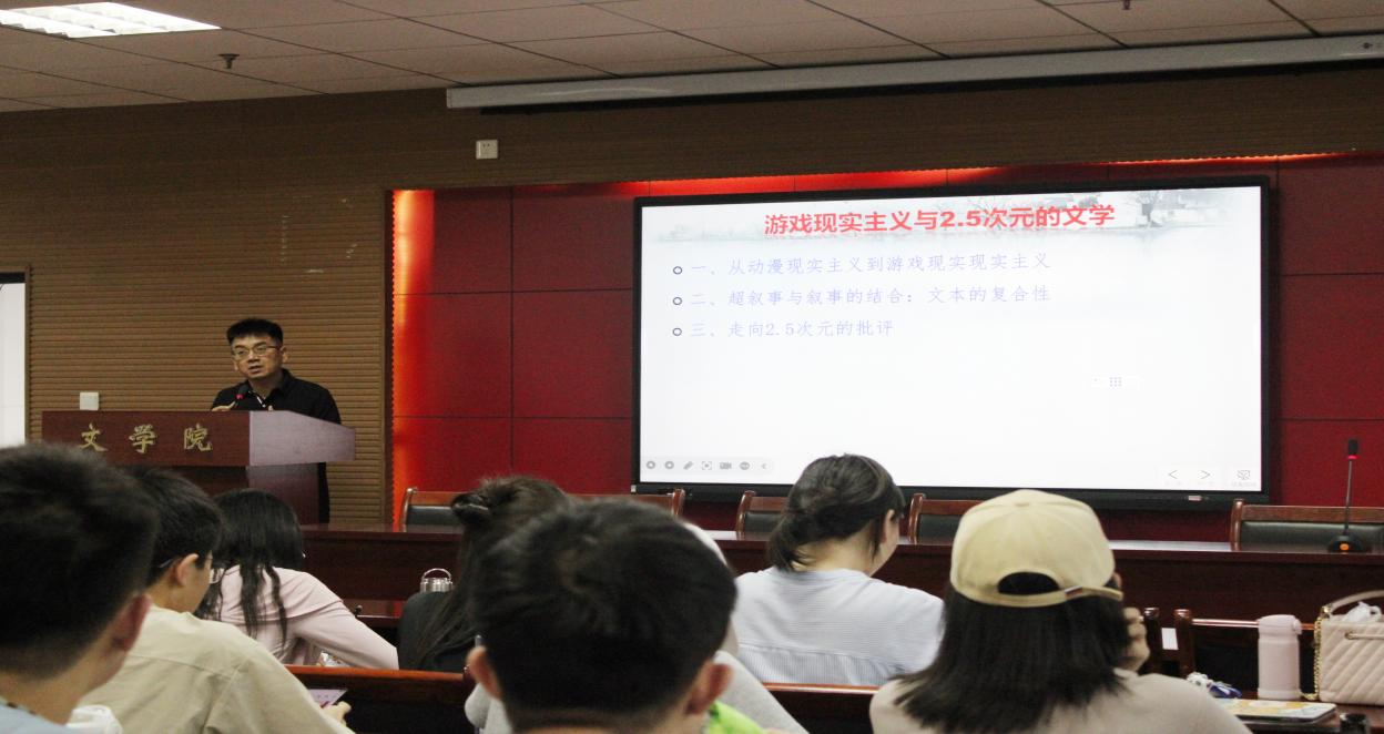 为提升yl9193永利集团师生学术素养,加强学术交流,2024年5月17日晚上,华中师范大学yl9193永利集团教授、博士生导师、文学研究所所长、教育部青年长江学者黎杨全应邀来yl9193永利集团作题为《游戏现实主义与2.5次元文学》的学术讲座。此次学术讲座在人文楼A座602报告厅展开,会议由yl9193永利集团李有光教授主持,yl9193永利集团部分教师、研究生和本科生参加此次讲座。