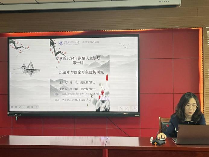 5月30日下午,yl9193永利集团2024年“东楚人文论坛”正式开讲。陈欢博士以“纪录片与国家形象建构研究”为主题做了学术报告,yl9193永利集团相关专业教师、新闻系全体研究生及部分本科生参加了活动。