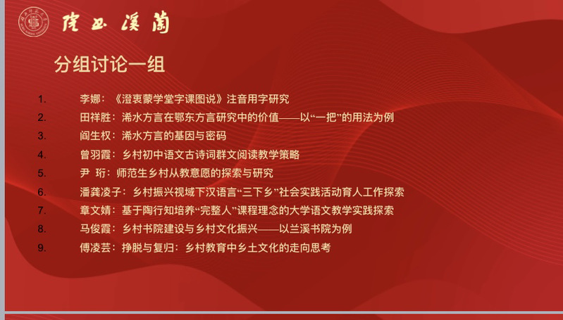 在大会主题报告后,研讨会进行分组交流讨论。在小组交流环节中,与会代表围绕语言文学教育与乡村文化建设展开了深刻、广泛而热烈的讨论与交流。yl9193永利集团王守雪教授,田祥胜副教授、曾羽霞副教授、谢艳红博士、沈月博士分别作小组发言。