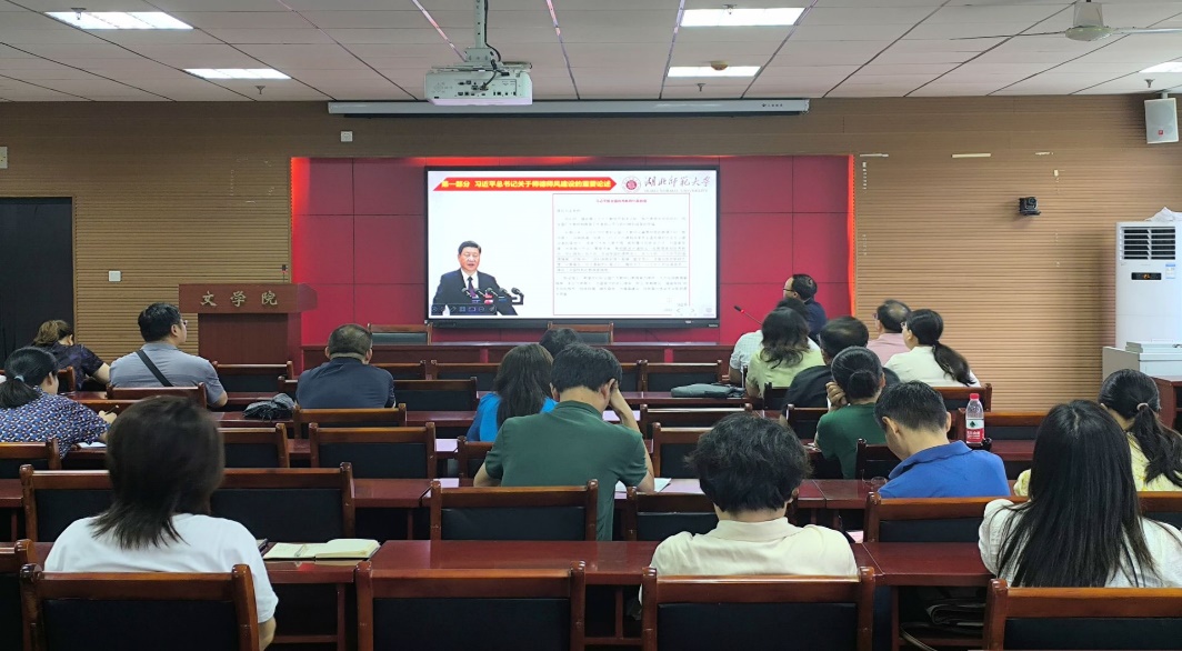 会议第一部分为“学习习近平总书记关于师德师风建设的重要论述”,杨文军领学了《习近平致全国优秀教师的信》,习近平在信中肯定了一批教育家和优秀教师对国家发展、民族振兴做出的卓越贡献,并呼吁广大教师以这些教育家为榜样。会议第二部分为“师德师风典型案例学习”,杨文军以一起正面典型案例,两起反面典型案例对全院教职工进行“以案说德”教育。杨文军强调了学院师德师风教育的重要性、必要性,并告诫各位教职工对两起反面典型案例引以为戒,自警、自省、自重,做以德修身、以德立学、以德施教、以德育德的楷模。会议第三部分,展开“清廉湖师故事会---屈原”学习,杨文军介绍了屈原的生平及事迹。倡导全体教职工应该如屈原般,保持廉洁的作风,坚守高尚的情操。