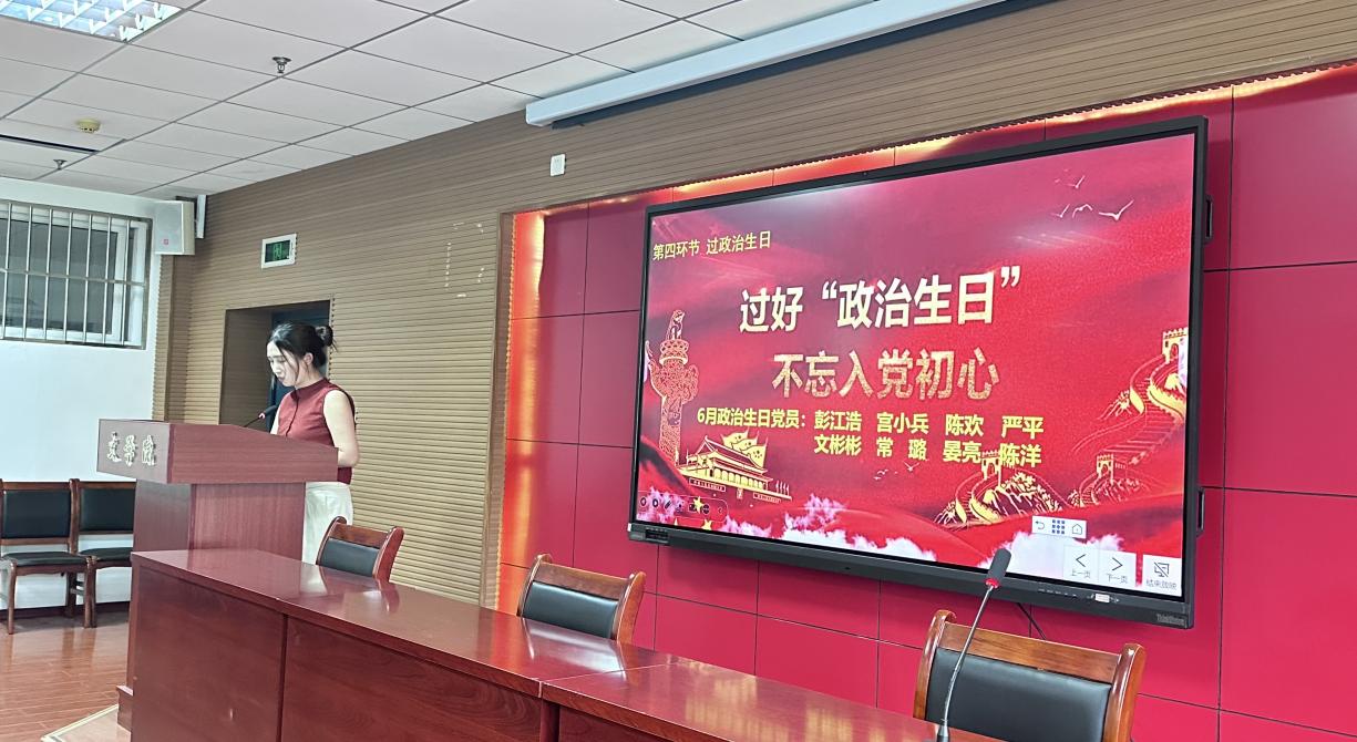 活动伊始,党员们交纳党费、集体重温入党誓词、诵读党章第28段。“过政治生日”环节,陈洋同志代表本月8名政治生日党员做了热情洋溢的发言。这是陈洋的第一个政治生日,她分享了自己辅导员工作的经历,深情地表达了自己的初心和使命:在工作岗位上勤奋努力,言传身教,真心对待每一位学生,当好学生成长道路上的引路人。