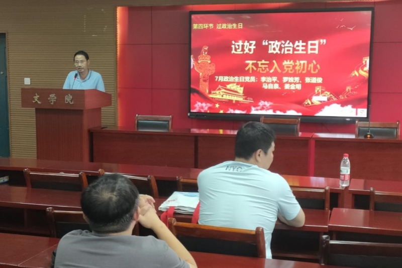 本月过政治生日的党员为李治平、罗姝芳、张道俊、马自泉、姜金明五位老师。政治生日代表张道俊同志讲述了自己的入党经历,以及党组织对自己的关怀,并表示了对党组织的感谢。同时,还对新入职的老师、年轻老师提出了殷切希望,嘱咐年轻党员老师要加强对组织的认识,要拼搏奋进,努力贡献。
