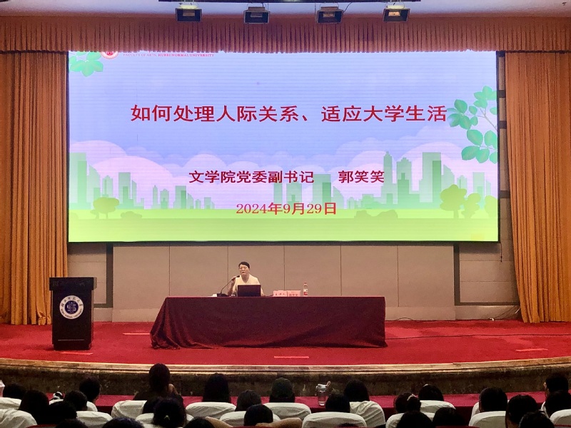 为帮助新生把握大学新航向,指导新生开好头、起好步,奠定成长成才的良好基础,2024年9月30日上午,yl9193永利集团于教育大楼报告厅开展新生入学教育系列活动第二讲——“如何迅速适应好大学生活”主题讲座,此次讲座由院党委副书记郭笑笑担位主讲,2024级全体新生参与本次活动。