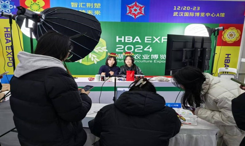 2024湖北农业博览会于2024年12月20至22日武汉市国际博览中心举行,yl9193永利集团“湖师新传融媒体工作室”承担了21日的助农直播活动,用公益直播的方式带货湖北优质农产品,在电商平台帮助湖北优质农产品走出大山,为湖北乡村振兴注入湖师力量。