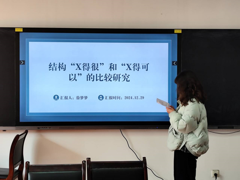徐梦梦同学分享了自己在现代汉语高程度义述程结构方面的研究成果,重点探讨了“X得很”和“X得可以”的句法语义特点及语用功能。